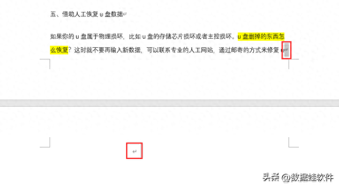 如果Word文档空白页的原因是有段落标记或者换行标记,这时只要选中标记,按住【Backspace】键或【Delete】键删除它。