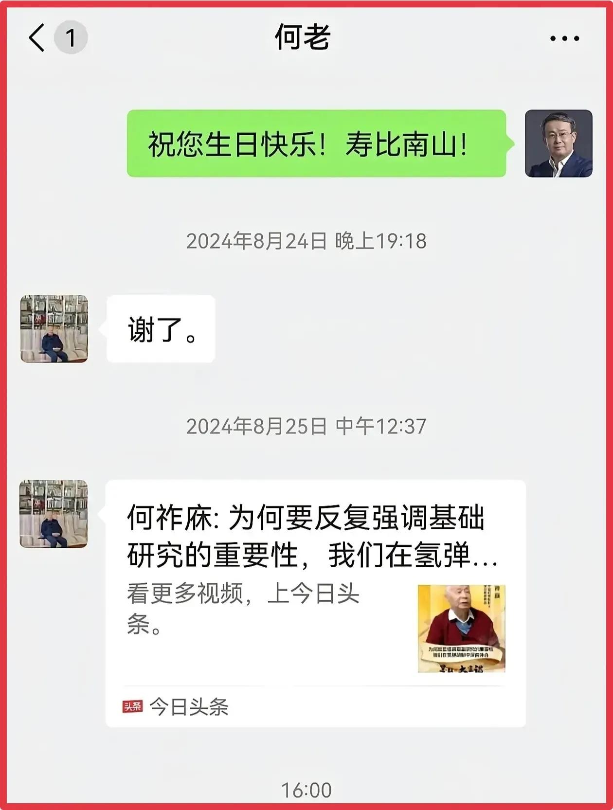 何祚庥生日的时候,项立刚更是送上了生日祝福,还祝何祚庥寿比南山呢!