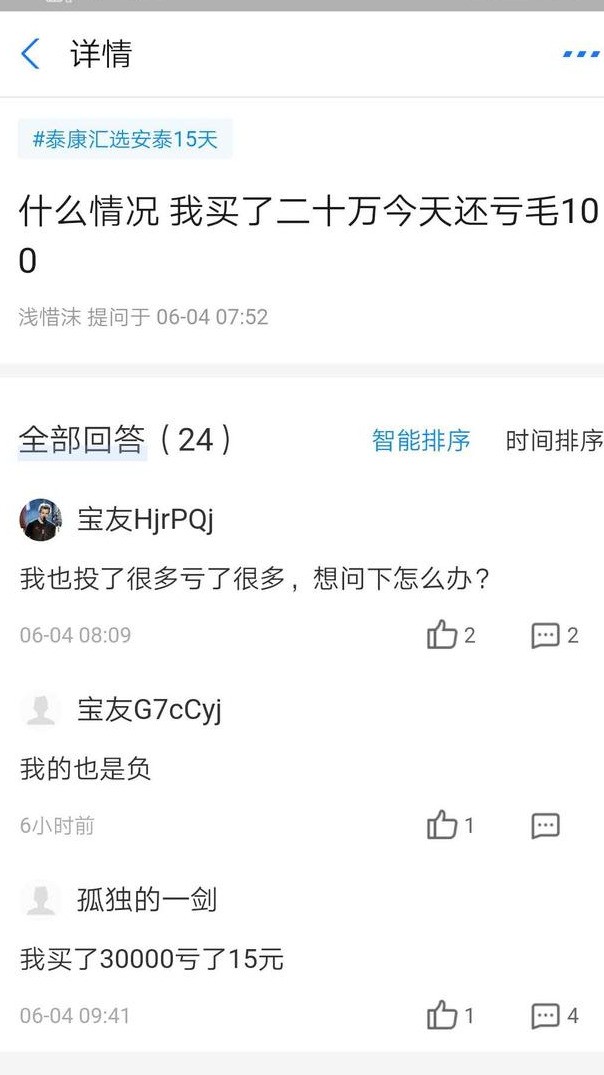 但是,重点的来了!就像之前的原油期货跌穿到负值的情况,此刻竟然在这款定期理财产品上出现了。小编的本金竟然亏了,一脸懵逼的我不知道自己是不是眼花了。再三确认后,小编发现在这个产品上亏掉本金的还不少。