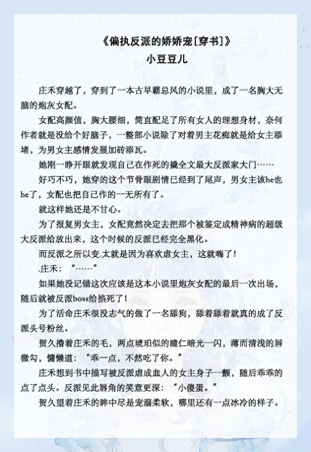 「推文」五本穿书救赎文,《偏执反派的娇娇宠》,治愈系小甜饼