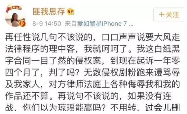 唐七公子的这番话,无疑是对抄袭指控的有力回击。他用自己的真诚和坚定,试图消除外界的误解和质疑。他希望通过自己的解释,能够让更多人理解模仿和抄袭的区别,也能够让大家认识到,他的《三生三世十里桃花》是一部真正的原创作品。