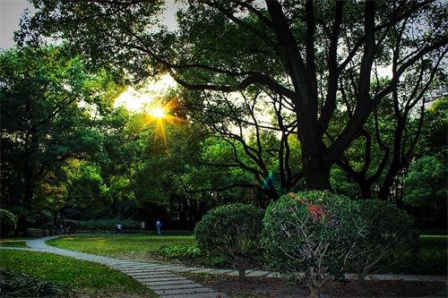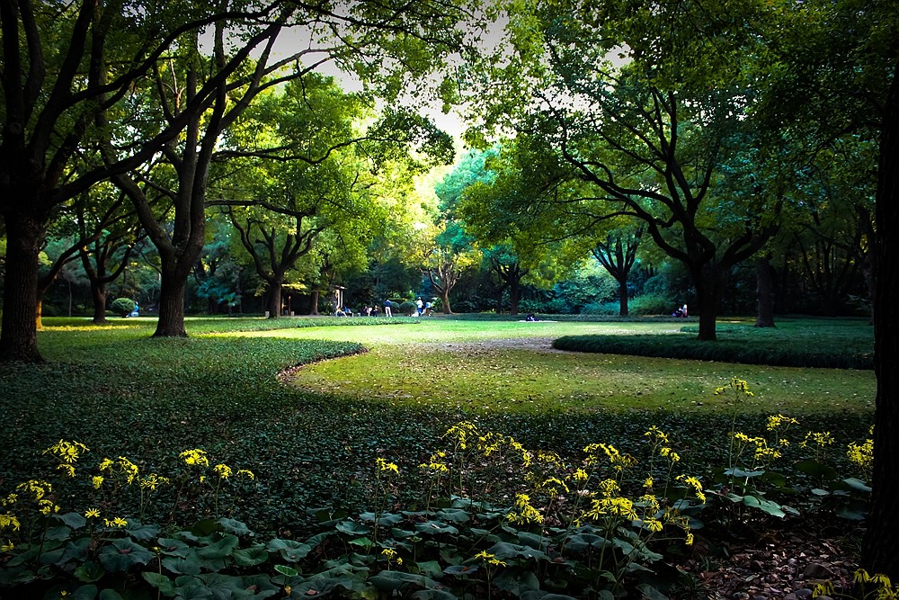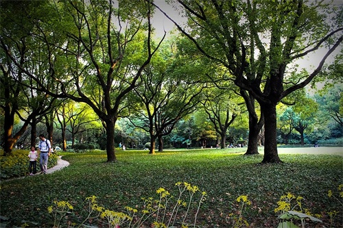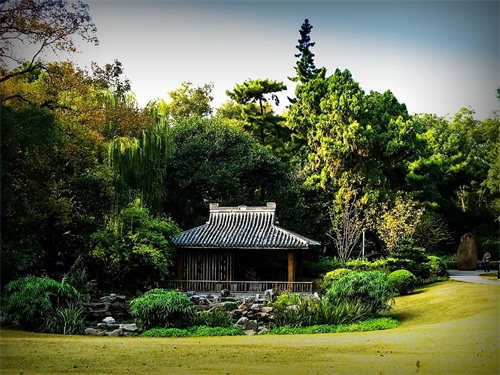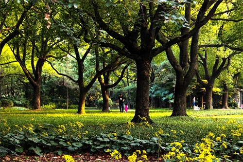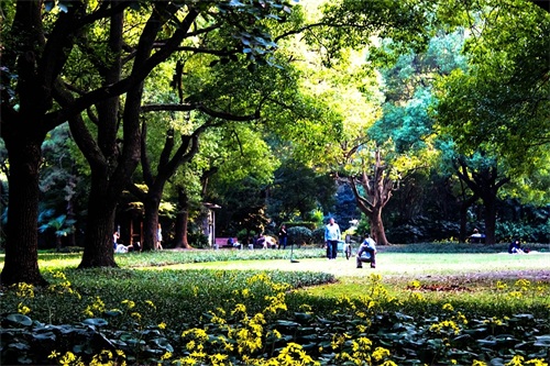 复兴岛公园是目前上海唯一一座日式园林公园,这里的草坪可媲美市区大公园的草坪,郁郁葱葱,静谧宜人。