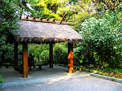 大草坪的西南面,本来有一间日式小屋,传说是日本人临时存放骨灰的场所,1981年小屋被拆除,改建成了休息廊。