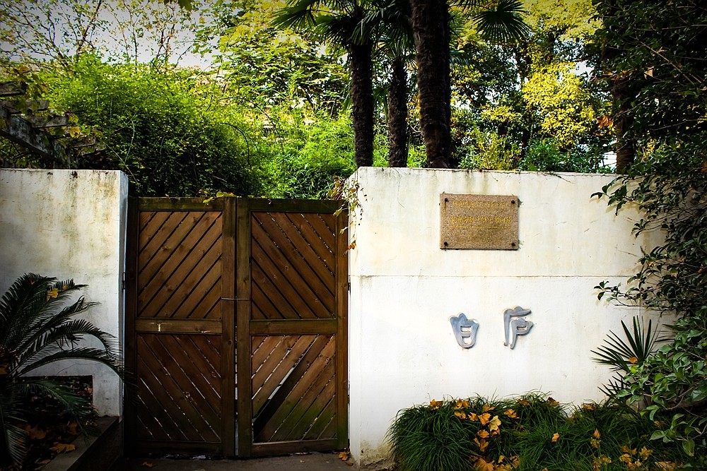 来到“白庐”前,铁将军把门,外墙的窗台上积着厚厚的灰尘,一副无人问津的样子。只能在周围随便看看,随便拍了几张外景照。这是一栋颇具日式风情的白色小洋楼,别墅的门口写着“白庐” ,它是蒋介石在上海最后的住处。当年大撤退,也是从白庐登船离开上海脱离大陆前往台湾岛的。