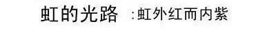 人眼按直线追溯射入眼中的光线射来的方向看到偏折较小的红光出现在“虹”的最外侧,而折射率最大的紫光出现在“虹”的内侧。