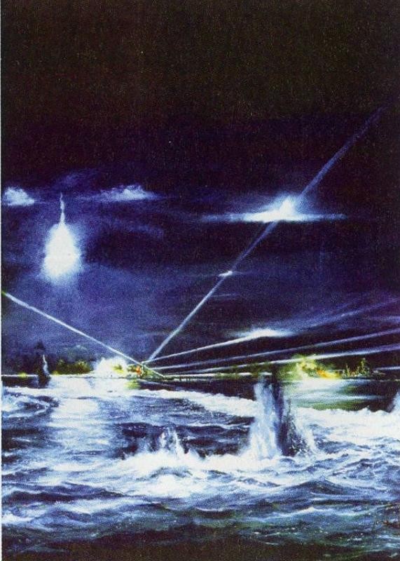 自以为解决掉一艘战列舰的近藤下令爱宕号开启探照灯寻找另外一艘美舰。就在爱宕号开灯瞬间,华盛顿号主炮齐发。