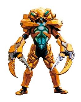 契约兽是火山巨蟹,属性不高,螃蟹型的二足步行怪物,因利刃的命令,袭击并吞噬周围的人,持有顽强的装甲,以双手的剪刀为武器,因利刃的卡盒破碎而废弃了契约,将须滕捕食,后来还想捕食虚弱的夜骑,最后被龙骑的“龙骑士踢"消灭了
