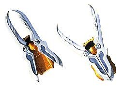 召唤机为利刃召唤机,装备与利刃左手的剪刀型武装召唤机,将合并部分打开可放入卡片,外形像一把锋利的武器