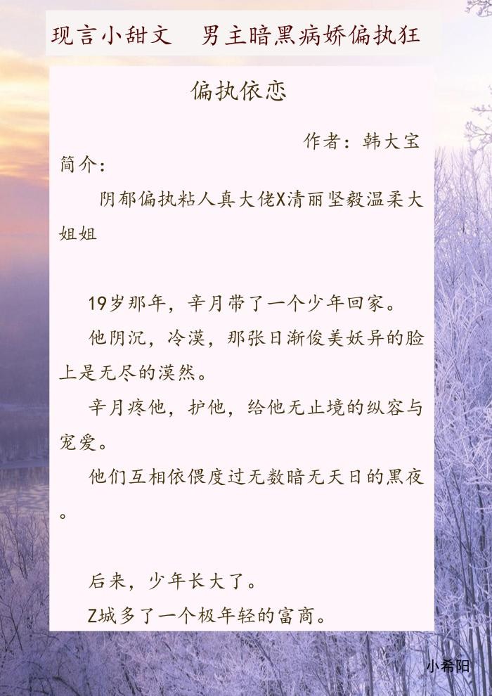 简要概括:对于从小缺爱的偏执少年,对他表现出无尽的关爱与宠爱,一直陪伴着他,那早就成为他们眼中的一道光啦!男主偏执,眼里隐藏得满满的爱恋,在自己喜欢的人面前卑微、乖巧,只想自己喜欢的人陪伴着自己度过一生,你是他世界里拥有的唯一光亮,是他全部的执念。