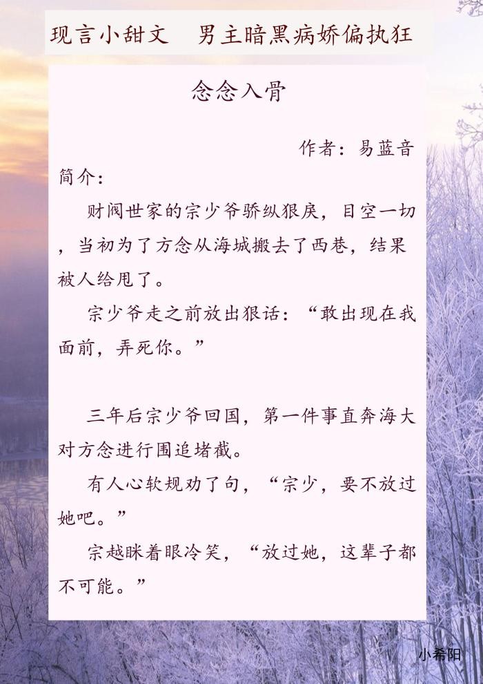 甜文 男主暗黑偏执病娇文《念念入骨》《偏执依恋》《他的金丝雀》