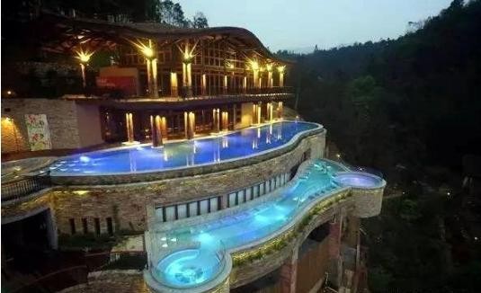 绝壁无限星空游泳池:位于南昆山最高峰天堂的山顶,悬崖峭壁上的无限星空游泳池和温泉SPA池,被原始的森林覆盖的群山包围着。