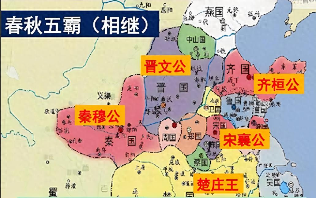 历史上的周朝分为西周和东周时期,其中东周又分为春秋和战国;春秋时期诸侯争霸,周王室衰微形同虚设;其中在这个时期产生了五位诸侯霸主,史称春秋五霸,按着产生的时间顺序分别:齐桓公(齐国)、宋襄公(宋国)、晋文公(晋国)、秦穆公(秦国)和楚庄王(楚国)。