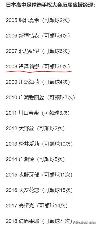 出道即巅峰!逢泽莉娜在同年就担任了全日本高中足球比赛应援经理。要知道在她之前的三位足球应援经理,可都是堀北真希,新垣结衣和北乃纪伊啊。
