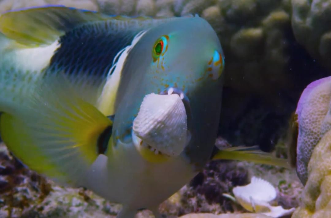 在纪录片《蓝色星球 第二季》中,一只聪明的猪齿鱼在海洋中开辟了属于自己的“专属厨房”——一个呈碗状的珊瑚,珊瑚内部有一处特别的凸起,被猪齿鱼用作了砸开蛤蜊壳的工具。