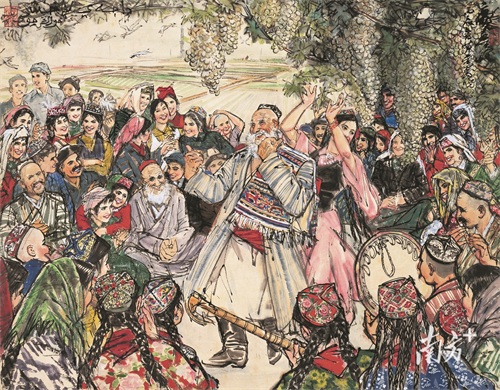 无论是《巡逻》《出诊》《塔吉克女教师》中基层民众的朴实身姿,还是《丰乐图》《新疆舞图轴》中少数民族的欢庆场面,黄胄如同一名游吟诗人,将边疆人民的真实生活转化为水墨语言的诗意表达,为中国现代美术史留下了不可替代的鲜活篇章。