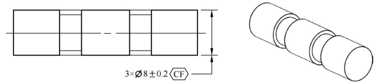 连续要素是指把两个或多个断开的要素,或者断开的规则尺寸要素,当作单个要素或单个规则的尺寸要素处理。连续要素符号CF可以应用标注在以下3种情况。