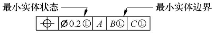 最小实体符号标注示例如图1‑30所示。最小实体符号可以标注在公差后面,也可以标注在基准后面,标注在公差后面叫作最小实体状态(LMC),标注在基准后面叫作最小实体边界(LMB)。