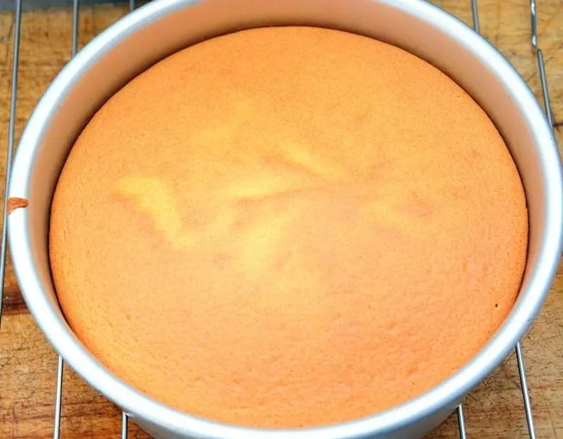 11、蛋糕烤好了就立即带上隔热手套把它取出来,放在桌子上嗑几下,然后倒扣在烤架上,等蛋糕完全冷却后就可以脱模了(可借助道具脱模)