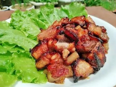3、烤好再稍微撒些孜然粉调味,放些蒜蓉口味更佳。用生菜包着吃,蘸大酱吃