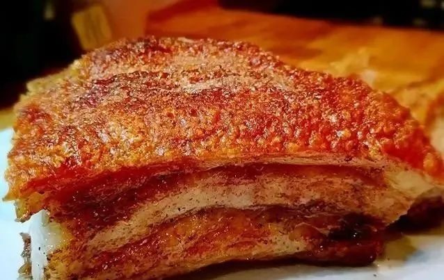 7、1个小时完成后,取出五花肉,去掉锡纸和盐层,再放入烤箱,250度烤40分钟,至脆皮金黄。