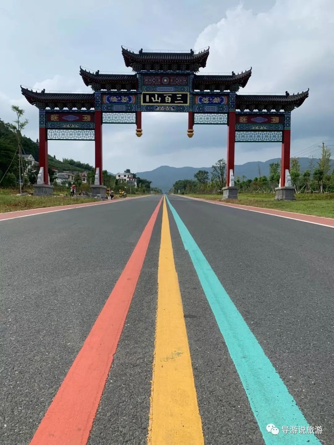 高速下来跟着这条彩虹公路就能抵达三百山,彩虹道选用了红色、绿色、黄色。