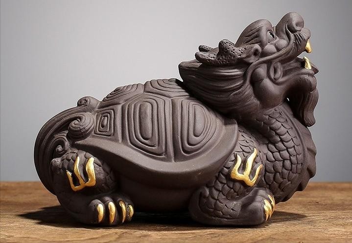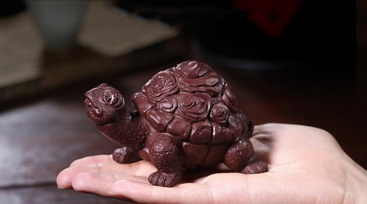 3、紫砂龙龟:龙龟知天文,晓地理,被视为守家护国的祥瑞之兽,在古代,龙龟被视为长寿与权威的象征。龙龟”谐音“荣归”,寓意“衣锦还乡,荣归故里”,这种荣归是平步青云,步步高升之后锦衣归来,所以摆放龙龟茶宠,有一种祝福事业高升的寓意在里面。