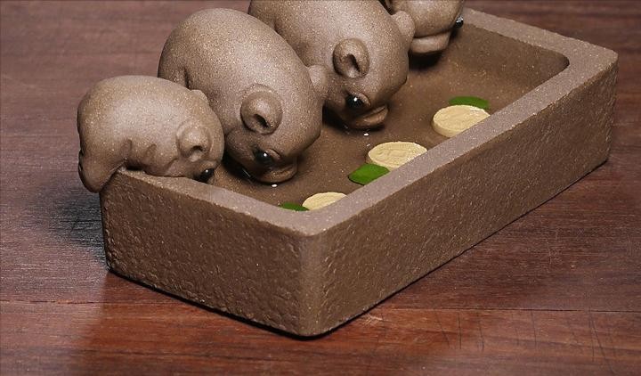 中国茶文化博大精深,茶宠是茶文化的重要组成部分。茶宠是用陶瓷做成,它的原料主要是紫砂。这些茶宠只浇茶之后,会有变色或者喷水的现象,让很多爱茶之人在喝茶的时候,增添了许多乐趣。