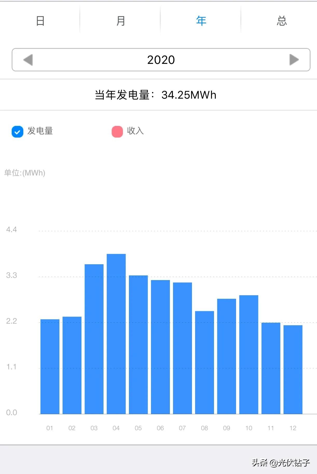 2019 年我一个朋友做光伏,也经常在一起聊过这个行业,大体也懂一些,后来他资金实在周转不过来了向我借款了15万,就用两个月,我借了,由于种种原因吧导致一直周转不过来,后来和我商量用光伏电站顶这15万,一开始我不同意,牵扯了一段时间他生意还是周转不过来后来甚至不干了,我就同意了这个方案,防止啥也拿不到,当时的我对这个顶多算一知半解,只知道每个月能收一次电费,给了我大概50kw,按照3元钱一瓦顶的,一共是3个电站,一个24.75kw,一个是13.51kw,一个是11.66kw,平均一个月下来能发6000多度电,能取3500元,因为2019年一度电是0.575元,也就是一年能有42000元,这个软件是监控设备但是总是丢失数据,下图这个是24.75kw,去年总发电量34250度,共19693元,足够有说服力了,另外两个数据不完整,1月2月的没了