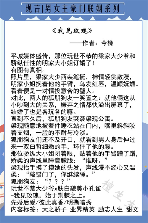 #头条品书团# 六本男女主豪门联姻先婚后爱的言情推荐,献给喜欢阅读的书友们!