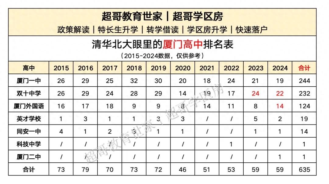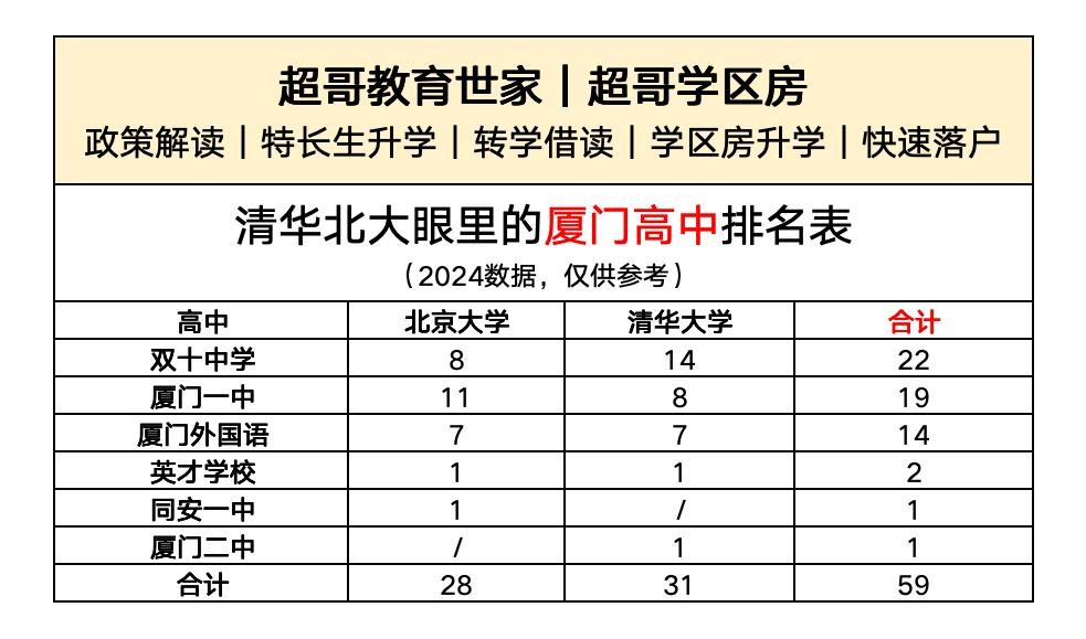 清华北大眼里的厦门高中排名