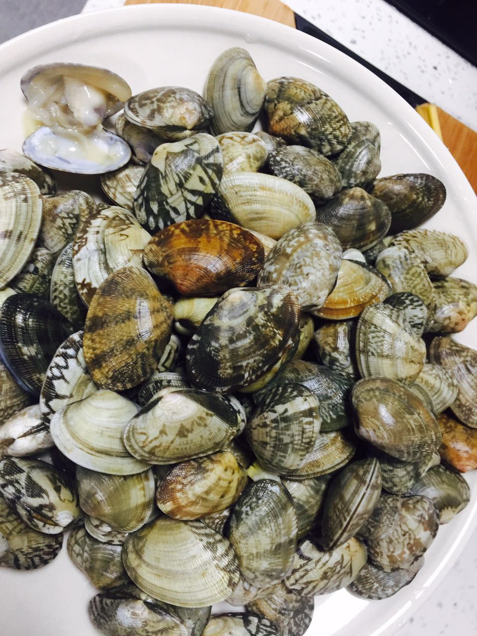 买回来的新鲜花甲先放清水中浸泡3个小时左右,水中加入少许盐巴,是为了促使花甲吐沙,如果吐沙不干净会大大影响口感,时间差不多了再将花甲用清水多洗几次,直到水见清为止。
