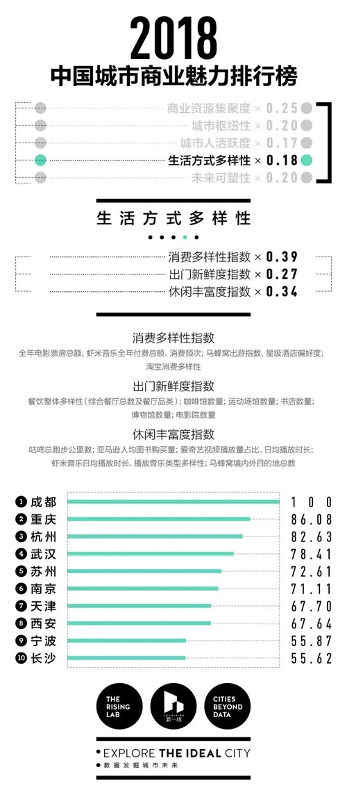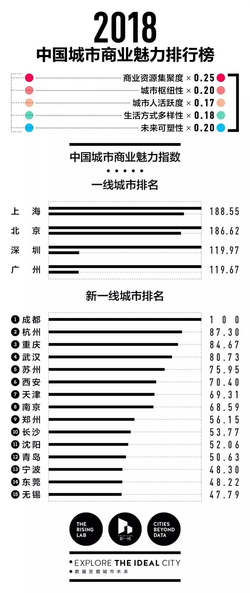 26日,2018中国城市商业魅力排行榜出炉。第一财经·新一线城市研究所依据最新一年的170个品牌商业数据、19家互联网公司的用户行为数据及数据机构的城市大数据,对中国338个地级以上城市再次排名。