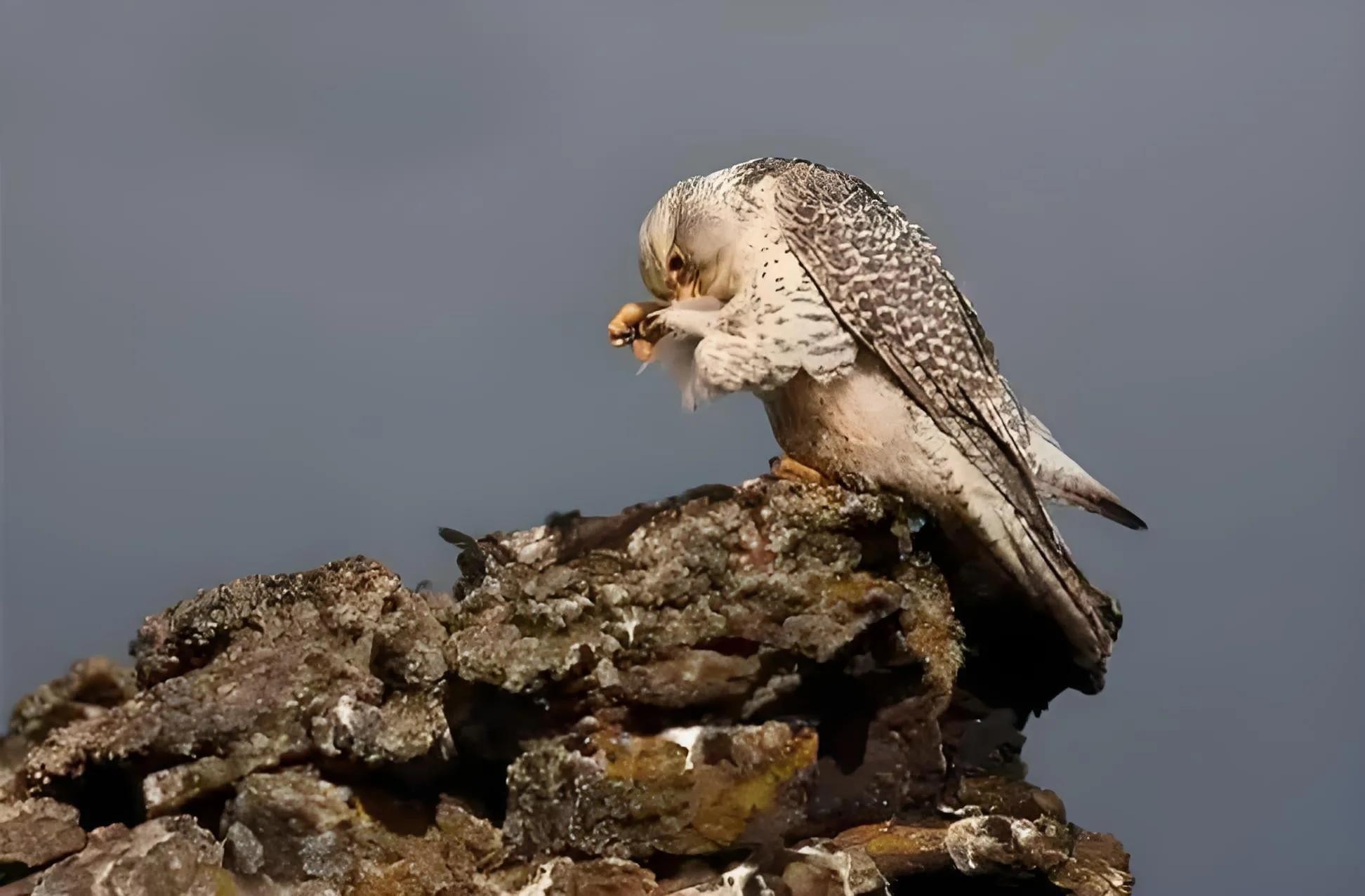 飞行的同时,敏锐的目光扫视着下方,一但发现猎物就会向着猎物俯冲而去,其俯冲的速度可达每小时240公里。在如此速度以及力量的冲击下,很多猎物都是一击毙命,甚至因为其敏捷的身手以及迅雷不及掩耳的速度,常常能够以小博大,捕捉到一些较大的猎物,如灰雁大鹅等大型的鸟类。不过它们虽然十分的勇猛,但也有一个缺点。尤其它们长期生活在寒冷的地方,因此十分的怕热,在炎热的环境中,会呼吸急促,体力急剧下降,甚至连飞行都会显得很吃力。