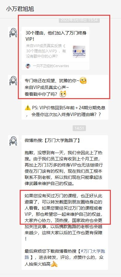 万门的小姐姐本来天天给我们一个同事发广告,今天拉着她要一起维权,把我们同事震惊了。