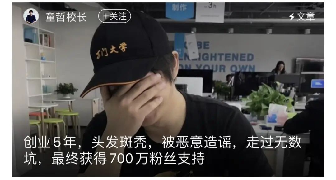 作为企业的创始人,或者一个IP形象来说,童哲一开始是非常成功的,很正面,只是谁也没有想到这个屠龙少年这么快就变成了恶龙本身。