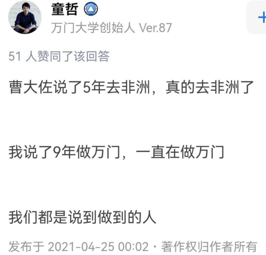 2021年是万门大学成立9周年,童哲在知乎留下豪言壮语,大家都觉得他是为“坚持9年”而自豪,现在才知道人家的意思是“只做9年”。