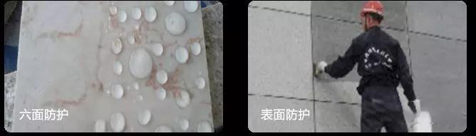 石材防护分为安装前防护和安装后防护,也就是平时所说的六面防护和表面防护。