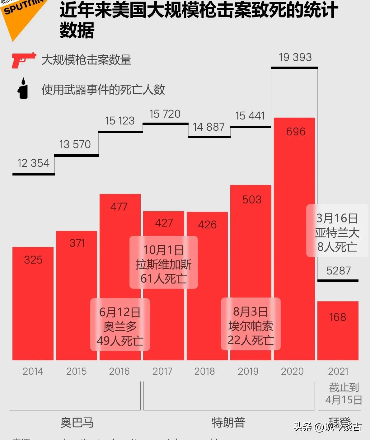 比如美国: 仅2022年至今,就已发生213起大规模枪击事件。近十年,美国一年平均有400起以上的大规模枪击事件发生(大小合计有上万起),平均每年有超过两万人在事件中丧生!