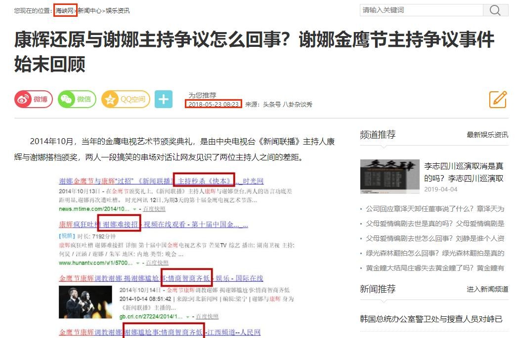 信息来源:海峡网《康辉还原与谢娜主持争议怎么回事?谢娜金鹰节主持争议事件始末回顾》