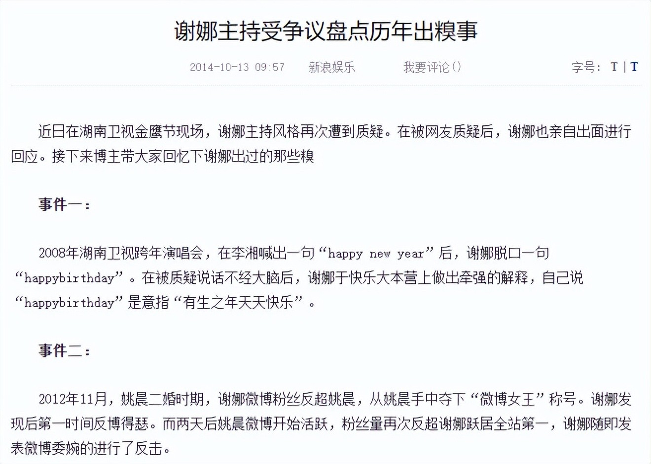 新浪娱乐《谢娜主持受争议 盘点历年出糗事》