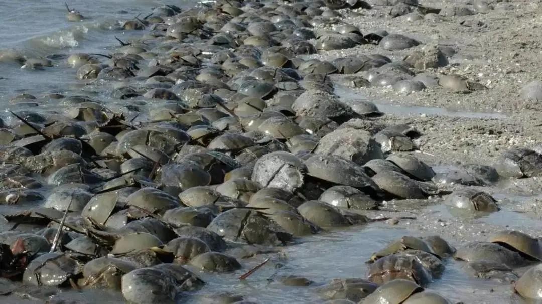 成群结队的鲎在海滩上数量着实庞大