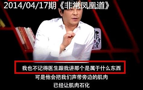 1. 他长期吸烟喝酒练沙哑声音,导致声带坏掉。