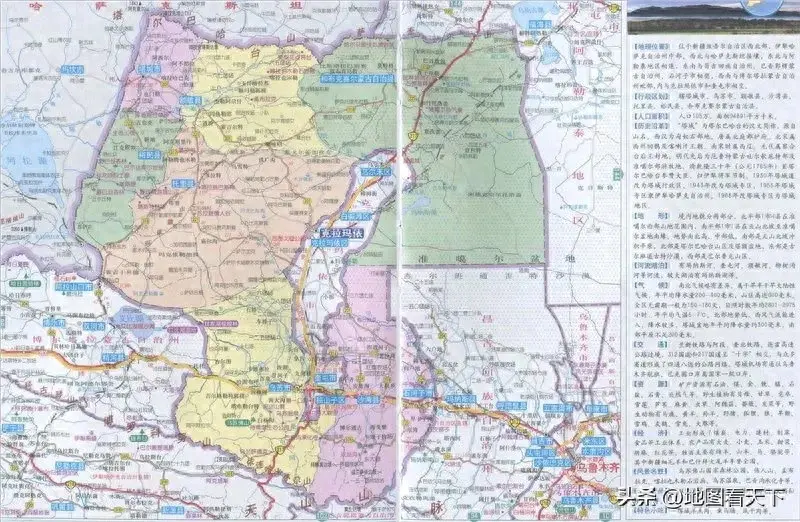 【地理位置】位于新疆维吾尔自治区西北部,伊犁哈萨克自治州中部。西北与哈萨克斯坦接壤,东北与阿勒泰地区相连,东南与昌吉回族自治州、巴音郭楞蒙古自治州、石河子市相望,西南与博尔塔拉蒙古自治州毗邻,内与克拉玛依市和奎屯市相交。