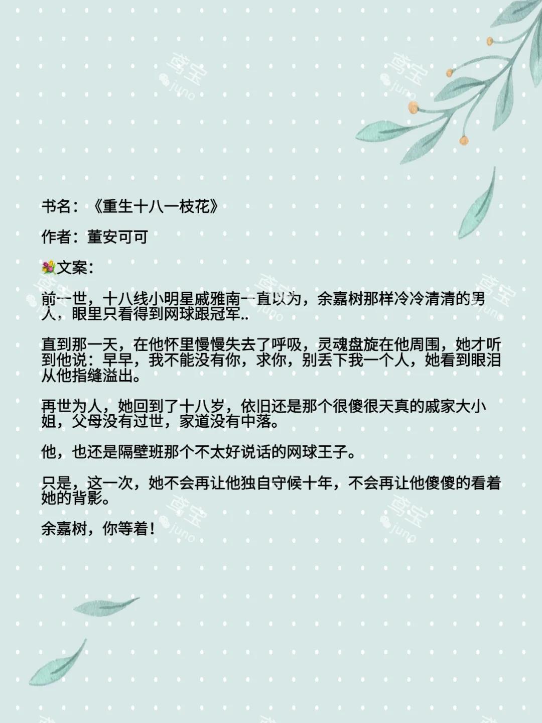 今天给大家推荐的是校园重生甜宠文[玫瑰]