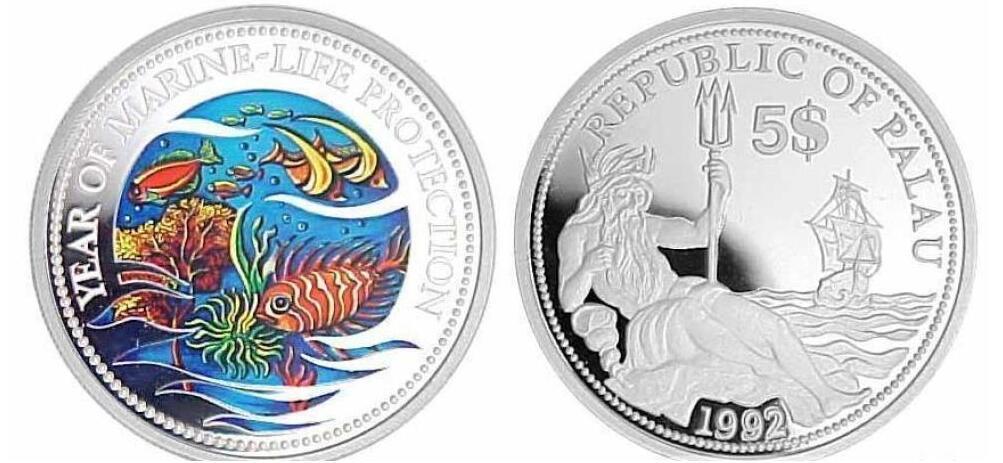 帕劳1992年世界首枚彩色银币