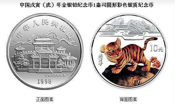 我国首轮彩银虎(瑞士代铸1998年虎年彩色纪念银币)