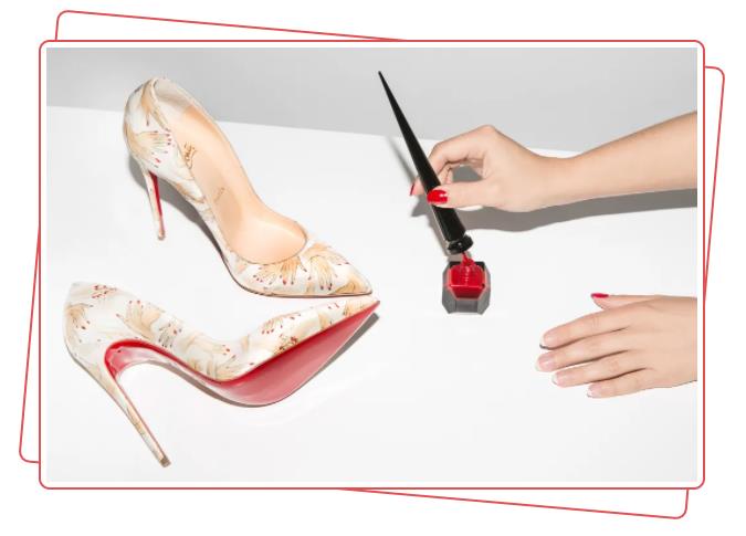 受女助手给脚趾涂红色指甲油的举动启发,Louboutin将红色指甲油涂满了高跟鞋的底面,一经推出,很多人对这一亮眼的设计表现出极大的关注。