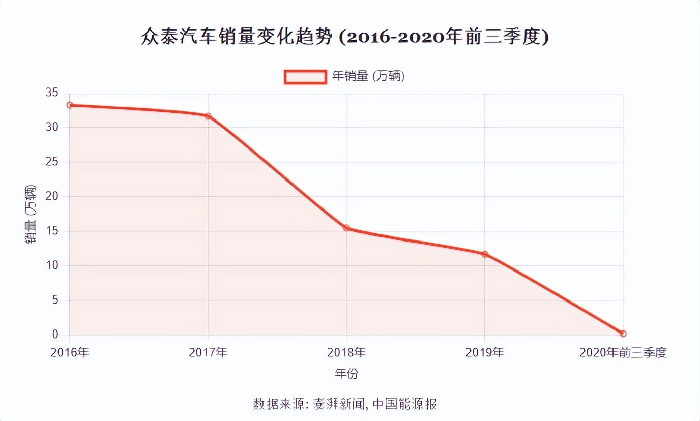 众泰汽车销量变化趋势 (2016-2020年前三季度)