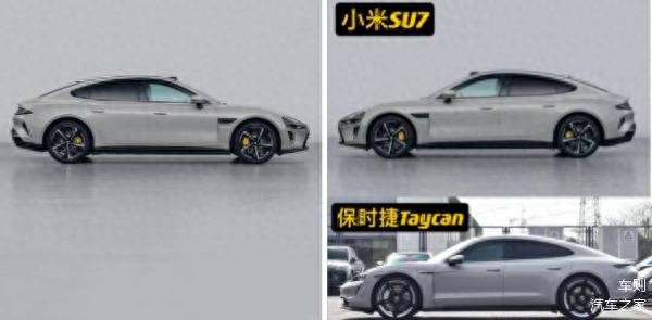小米SU7(左)与保时捷Taycan(右)侧面轮廓对比