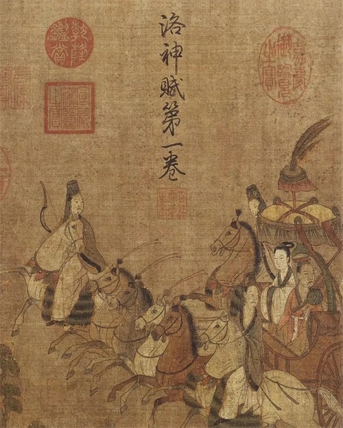 《洛神赋图》恰似一场如梦如幻、缠绵悱恻的千年绮梦,在历史的舞台上轻盈起舞。顾恺之,这位丹青史上的传奇巨匠,宛如一位能赋予灵魂以形态的魔法师,用他那灵动飘逸、似有生命的笔触,将曹植与洛神之间那段令人心碎又心醉的爱情绝唱,细腻地勾勒于素绢之上。曹植初见洛神时的瞬间惊艳,那眼中闪烁的爱慕之光,犹如夜空中璀璨的星辰;相处时刻的深情凝望,眉眼间流淌的柔情蜜意,仿佛春日里潺潺的溪流;分别之际的悲痛欲绝,面庞上弥漫的哀伤与怅惘,恰似深秋里凋零的落叶。画面中的线条,时而轻柔婉转如丝弦,勾勒出人物的绰约风姿;时而刚劲有力似剑戟,描绘出山水的雄浑气魄。色彩的晕染则宛如晨曦透过薄雾,营造出一种诗意朦胧、虚实相生的梦幻之境。它宛如一颗划破夜空的启明星,不仅为后世绘画技法的发展照亮了前行的道路,更在审美意趣的追求上引领了一场深刻的变革,让绘画艺术挣脱了世俗的桎梏,向着自由而纯粹的审美境界展翅翱翔,开启了中国绘画艺术辉煌灿烂的新纪元。
